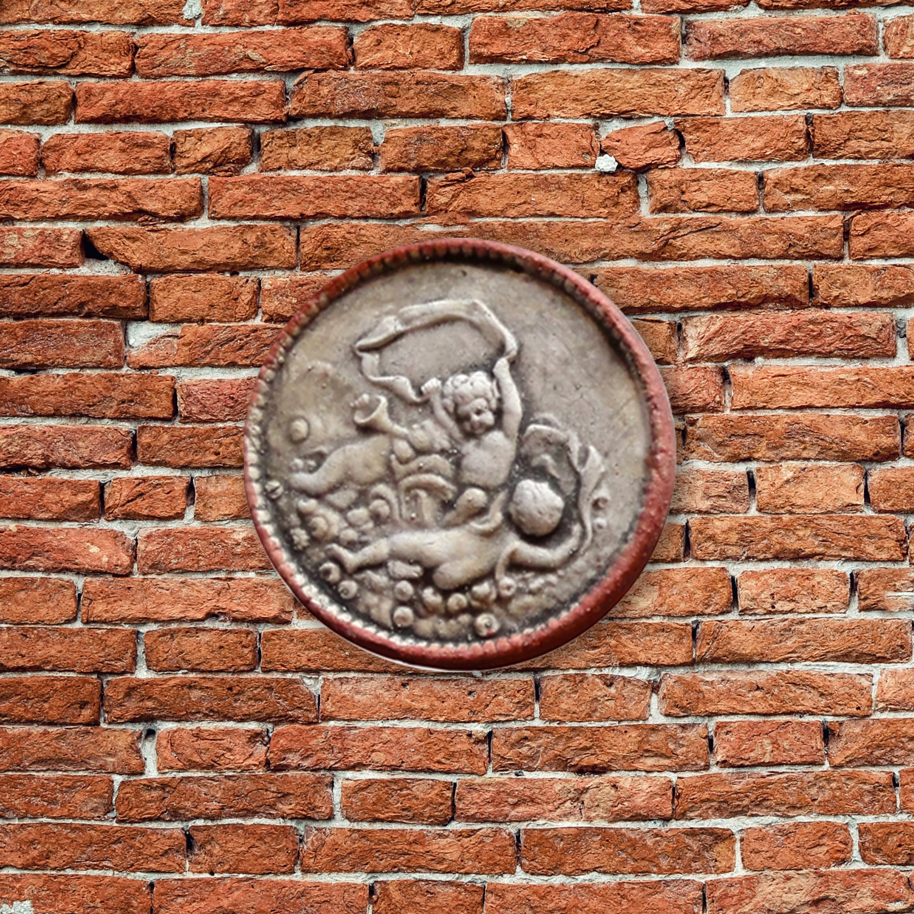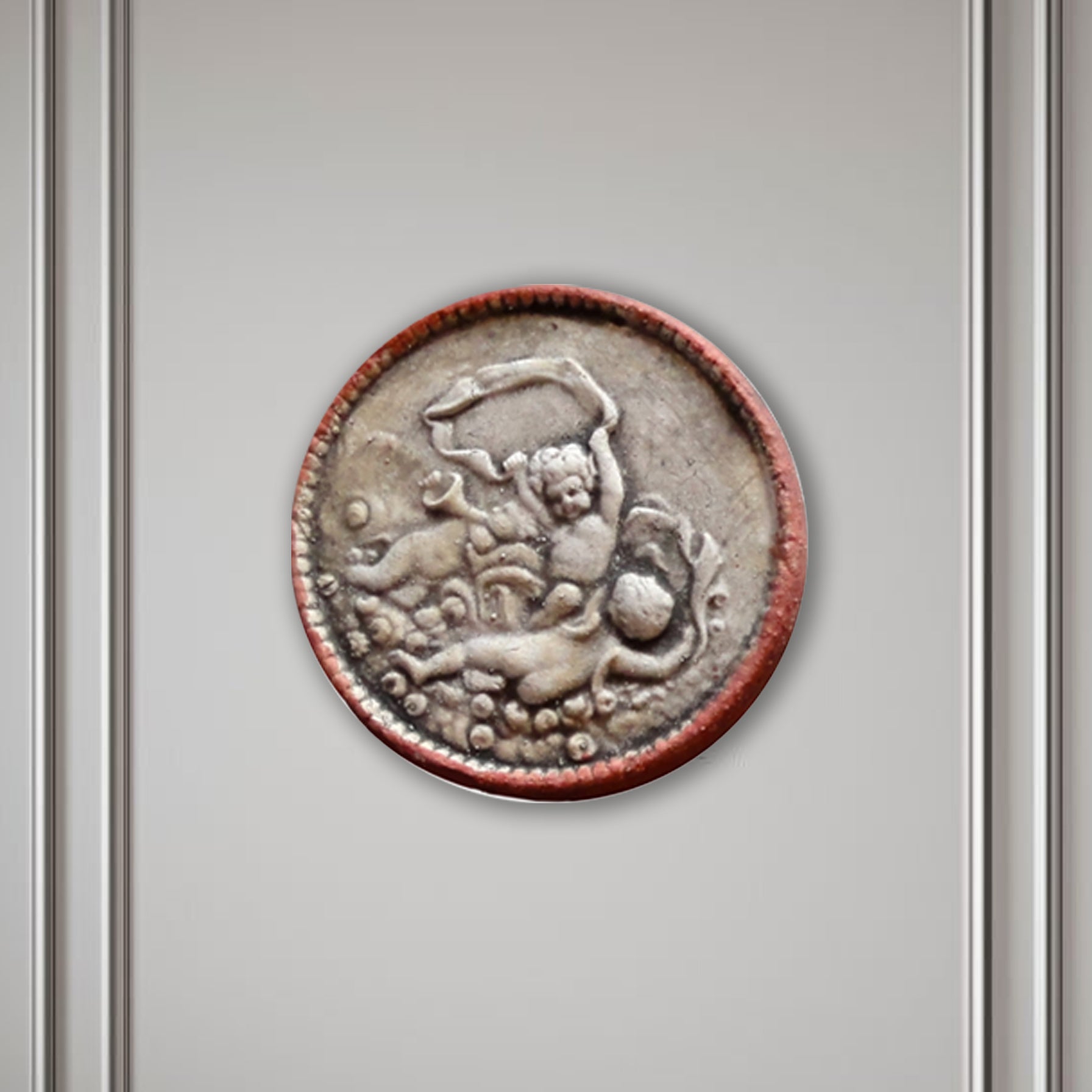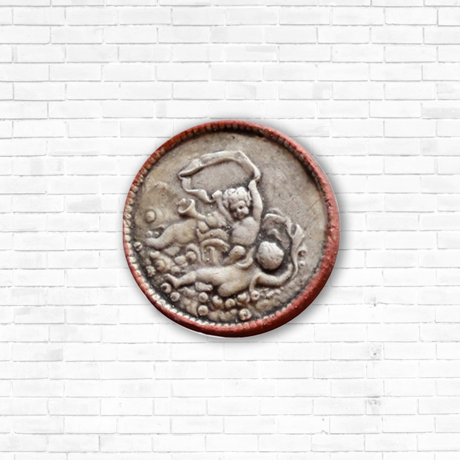 Das wunderschöne, handgefertigte kleine Kamee zeigt drei musizierende Putti im Himmel. Das Flachrelief, das aus Terrakotta besteht, wurde von einem neoklassischen Edelstein inspiriert.
