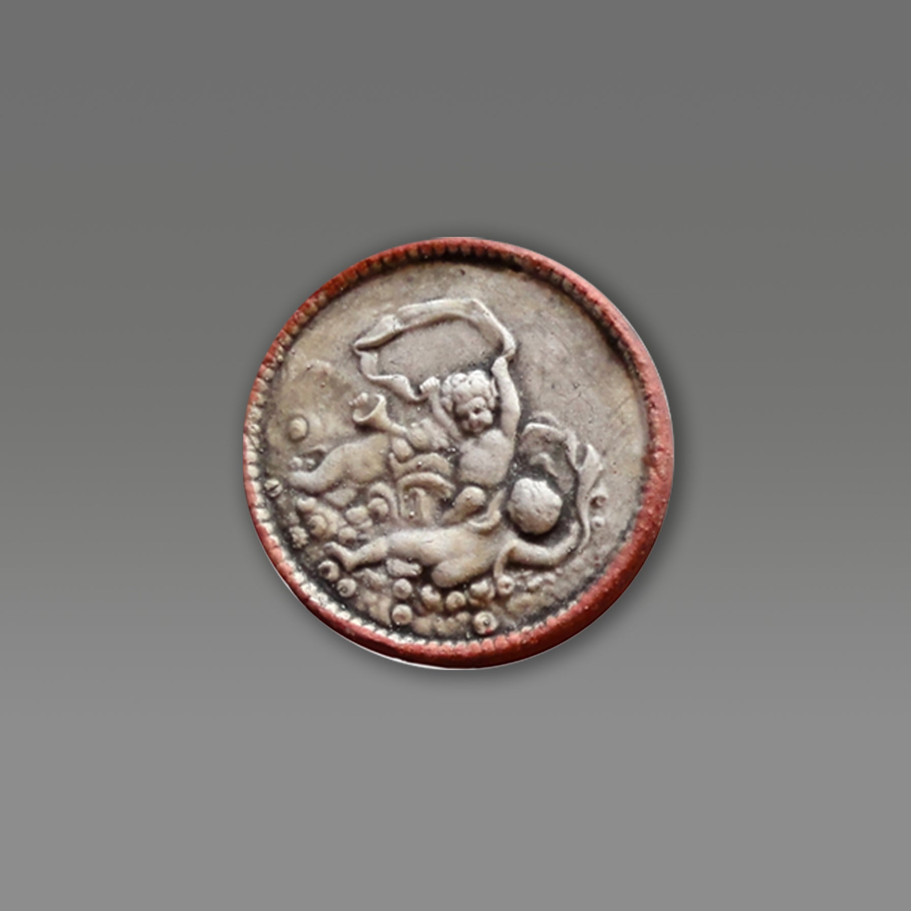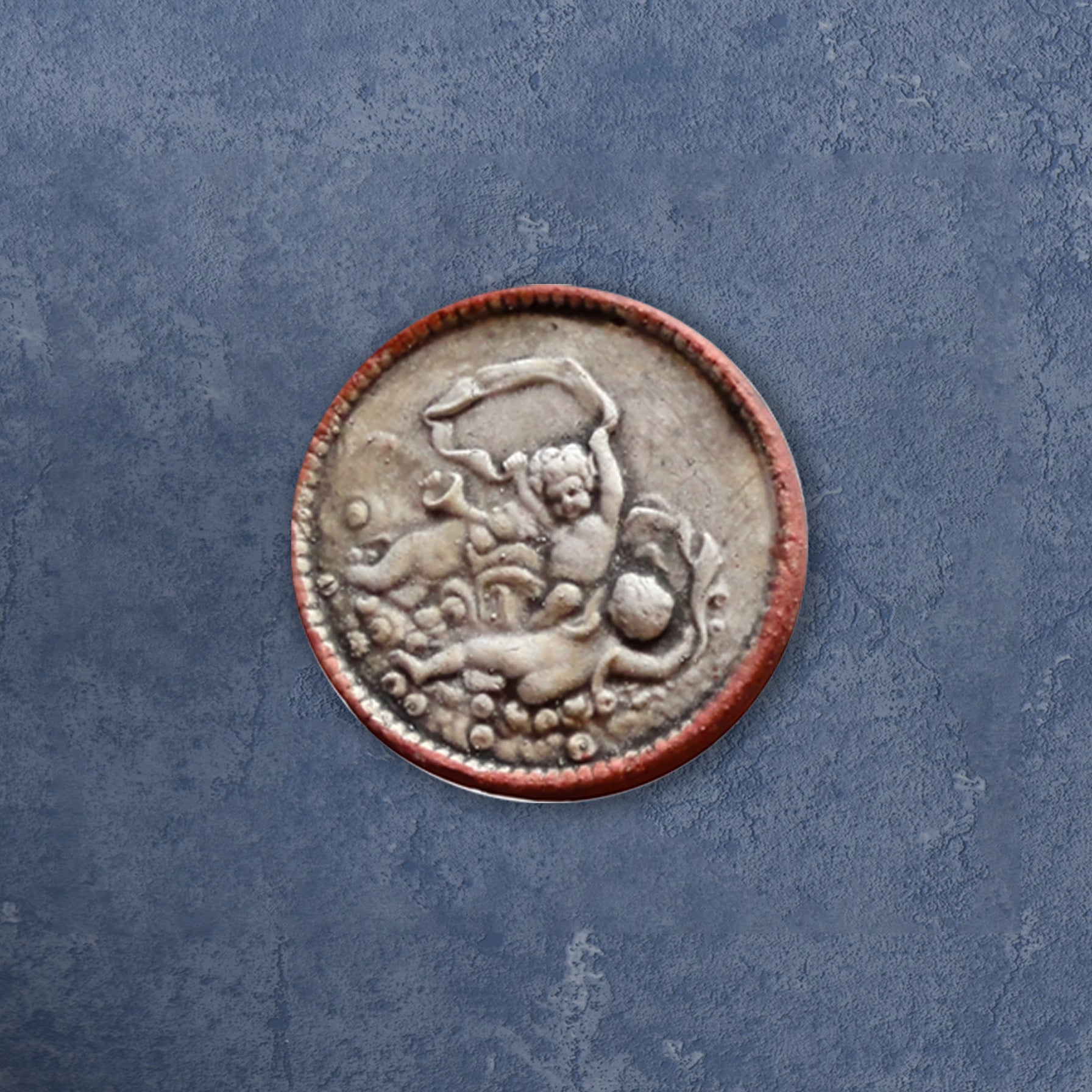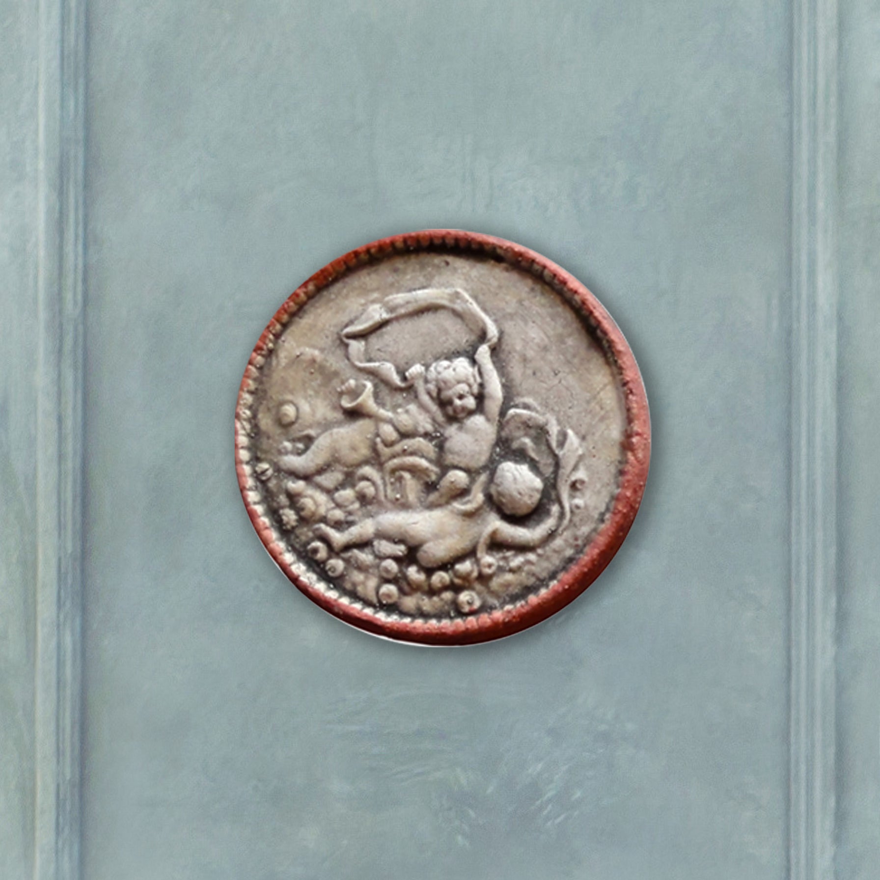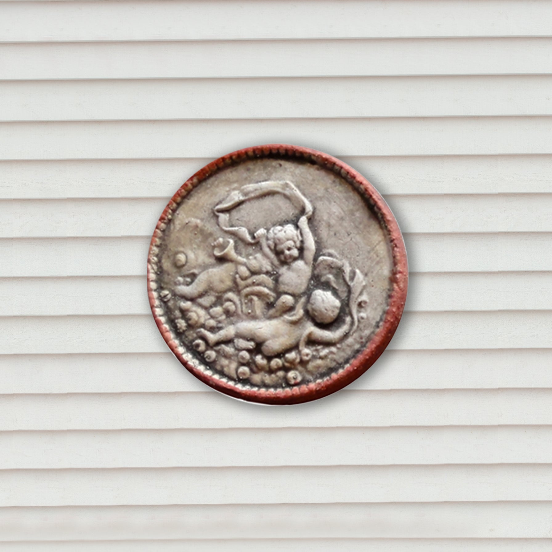 Das wunderschöne, handgefertigte kleine Kamee zeigt drei musizierende Putti im Himmel. Das Flachrelief, das aus Terrakotta besteht, wurde von einem neoklassischen Edelstein inspiriert.