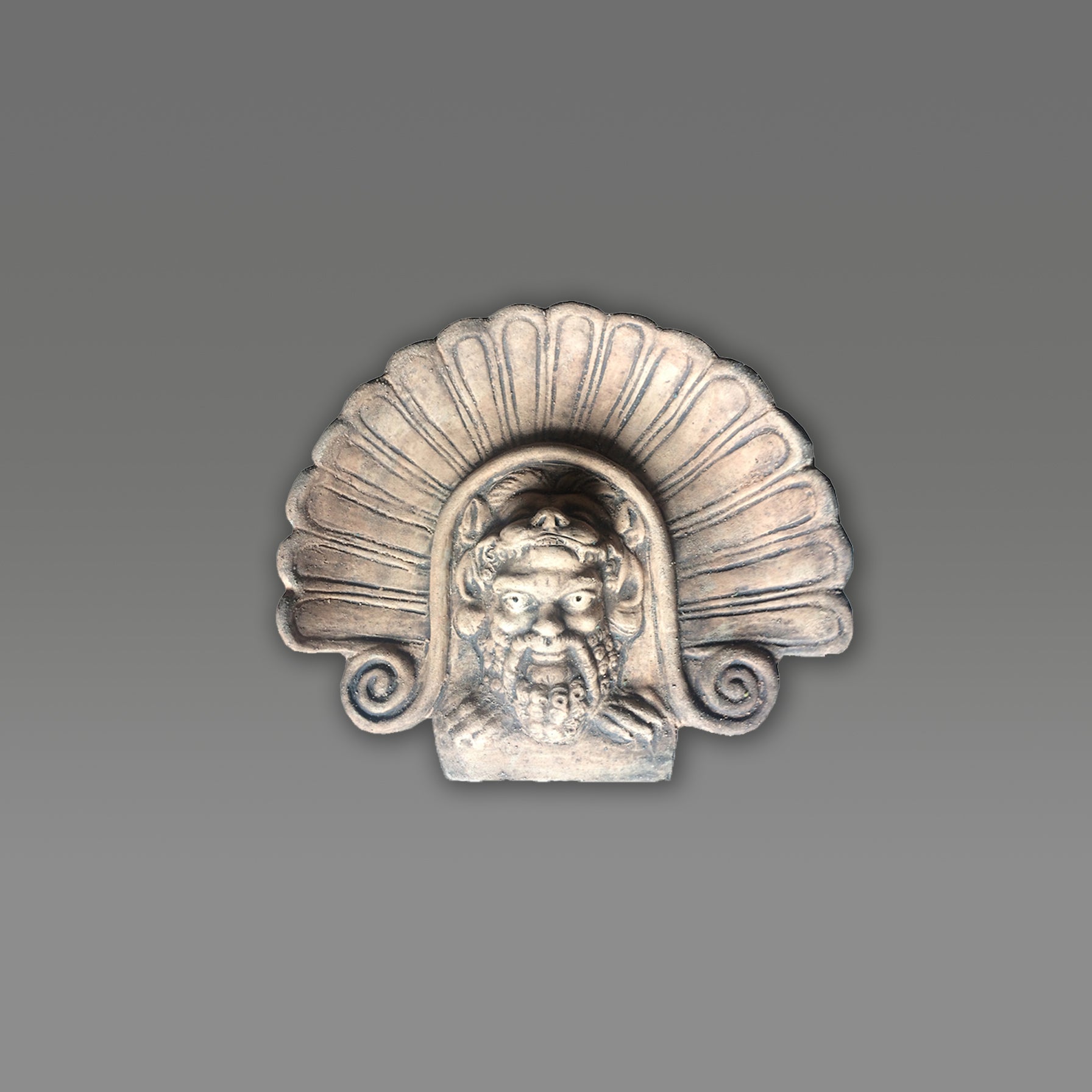 Wunderschöne, handgefertigte Skulptur aus Terrakotta, mit viel Liebe zum Detail und nach alten Techniken modelliert. Es handelt sich um eine freie Interpretation eines der antiken Antefixe, die auf 460 v. Chr. datieren und in Pyrgi gefunden wurden. Sie sind jetzt im Museo di Villa Giulia in Rom ausgestellt.