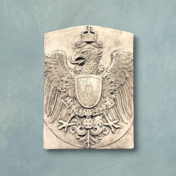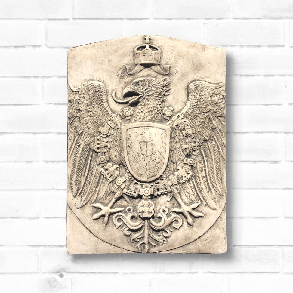 Der Kaiseradler oder Reichsadler ist der heraldische Adler, abgeleitet von der römischen Adlerstandarte, die erst von den Kaisern des Heiligen Römischen Reiches und danach zwischen den Jahren 1871-1918 in modernen Wappen Deutschlands verwendet wurde.