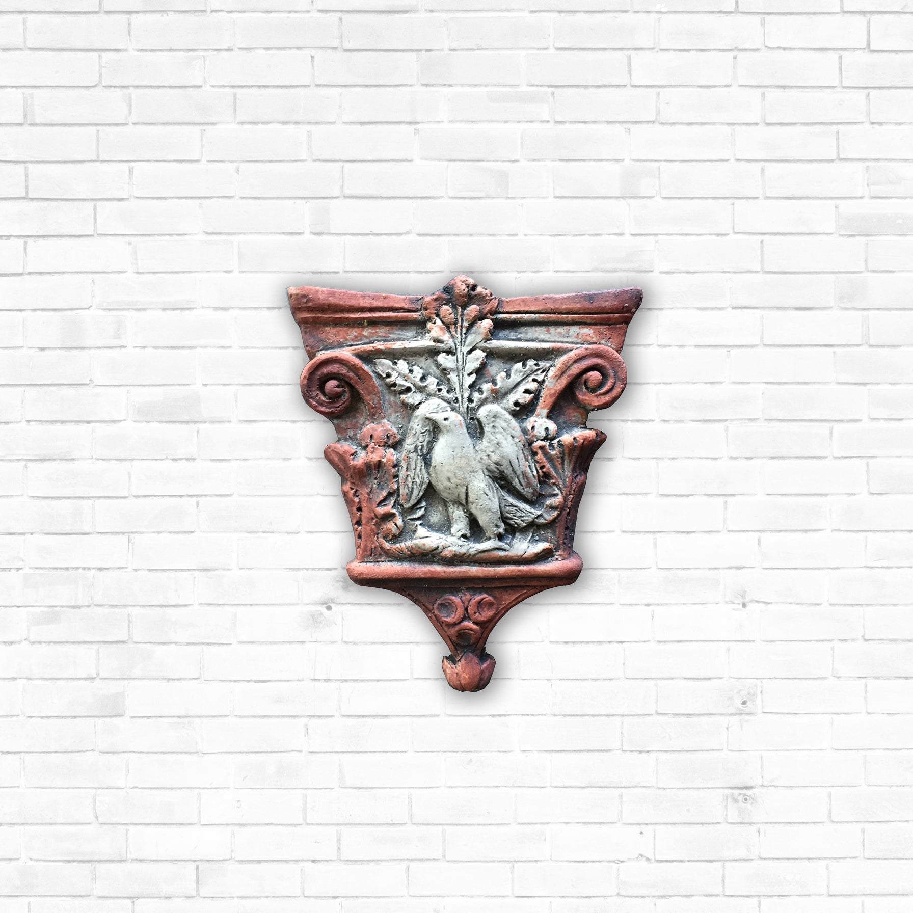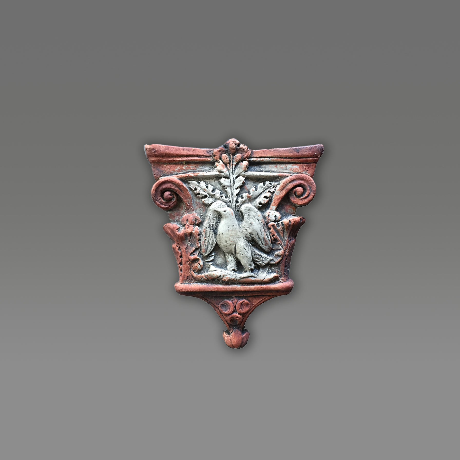 Da es bei etwa 1000 °C gebrannt wurde, kann dieses Renaissance-Kapitell im Freien aufgestellt werden und wird weder durch Sonne, Kälte noch Frost beschädigt.