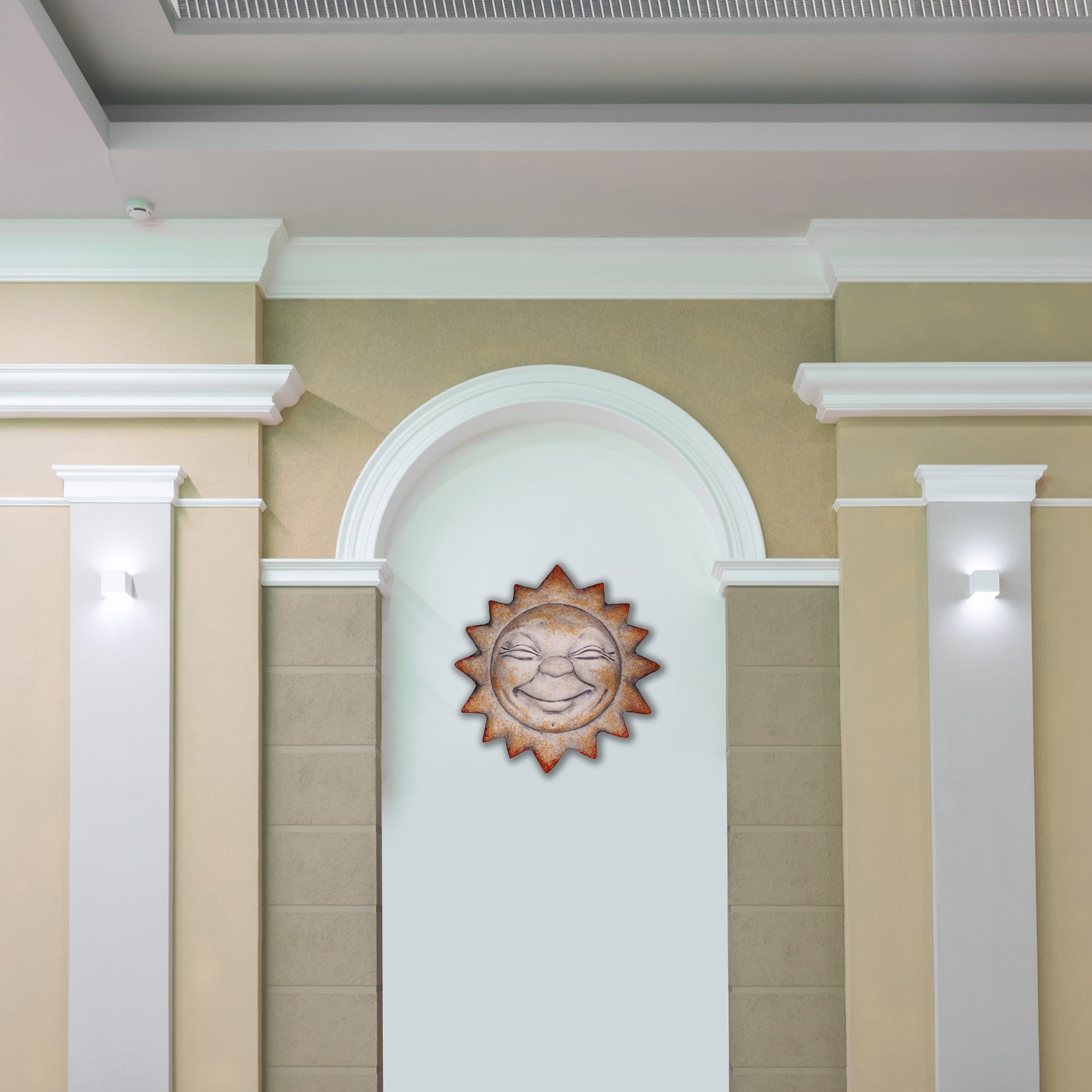 Wunderschönes, handgefertigtes Relief aus Terrakotta, mit viel Liebe zum Detail modelliert. Die Lachende Sonne von Ithaca bringt Wärme und Freude in jeden Raum und erhellt Ihr Zuhause oder Büro mit einer langlebigen, fröhlichen Skulptur.
