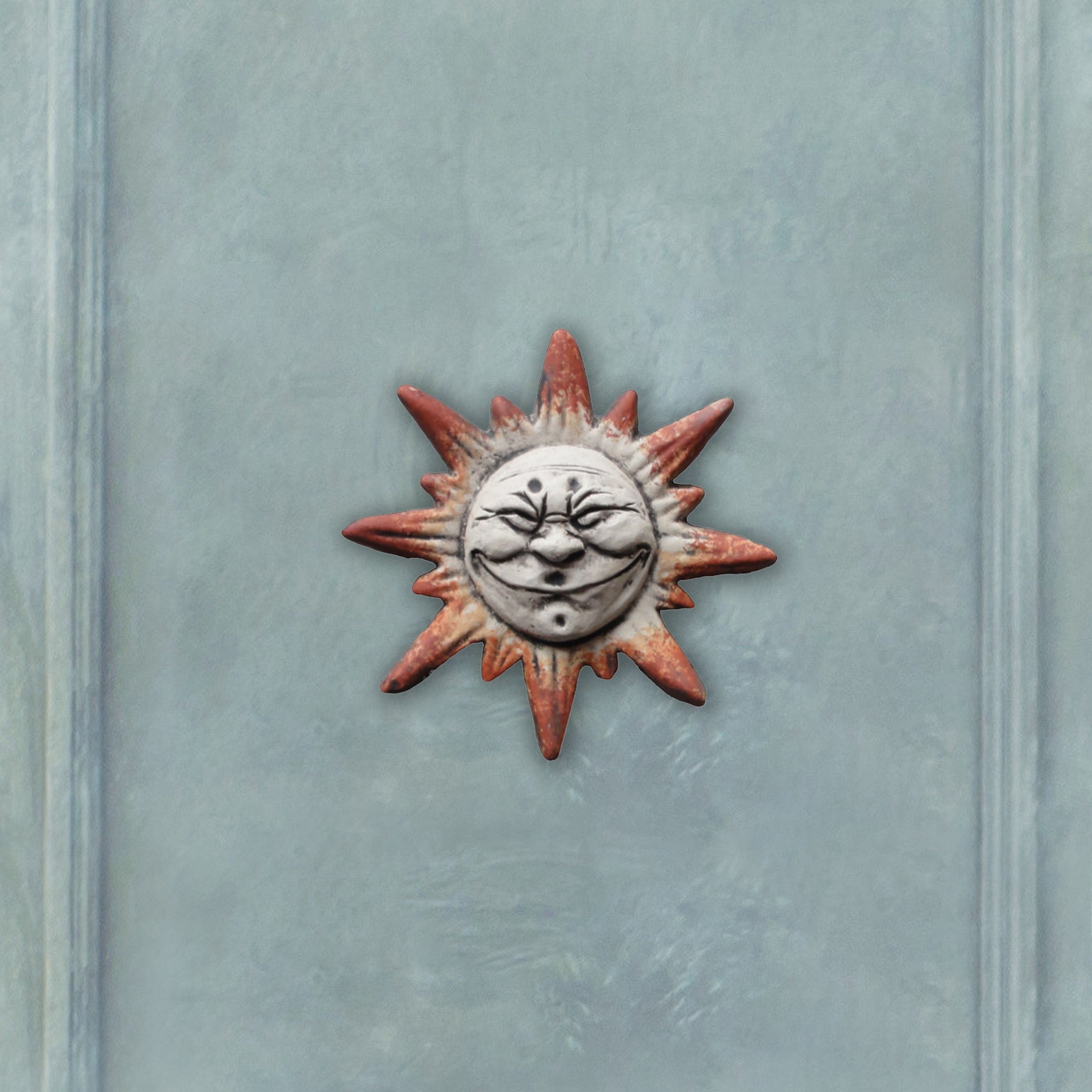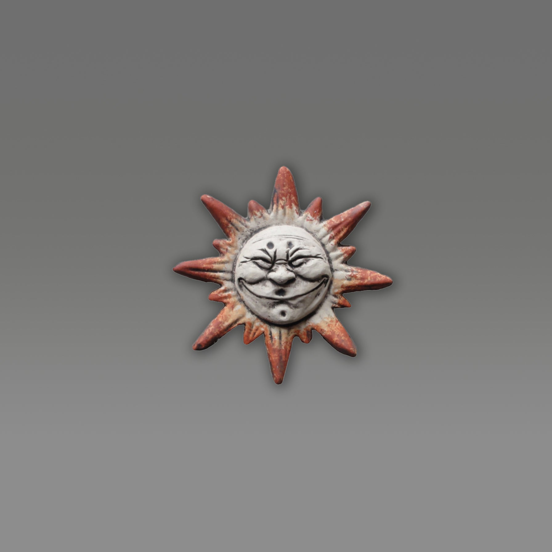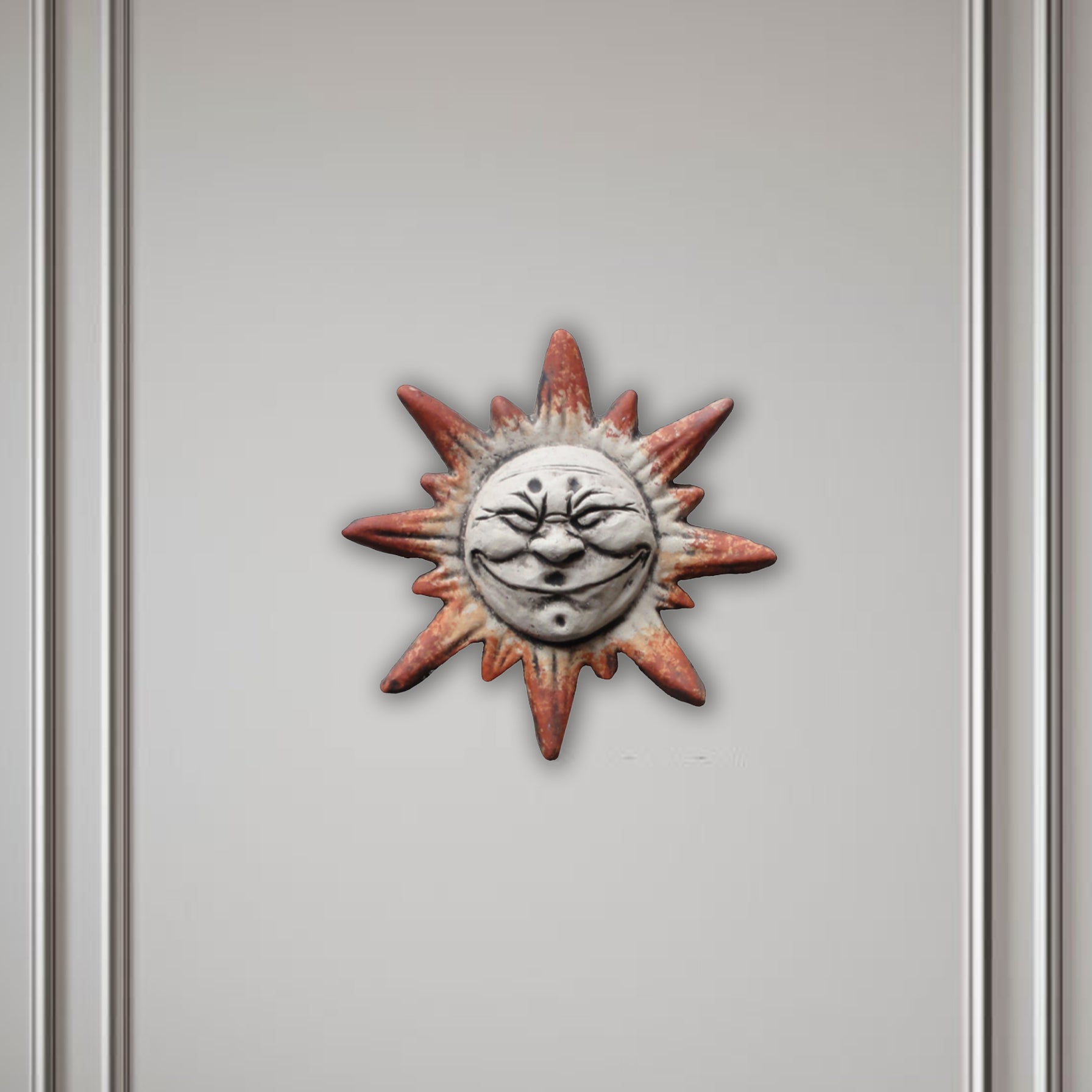 Wunderschöne, handgefertigte Skulptur aus Terrakotta, mit viel Liebe zum Detail modelliert. Die kleine, strahlende Sonne bringt Wärme und Freude in jeden Raum und erhellt Ihr Zuhause oder Büro mit einem langlebigen, fröhlichen Ornament.